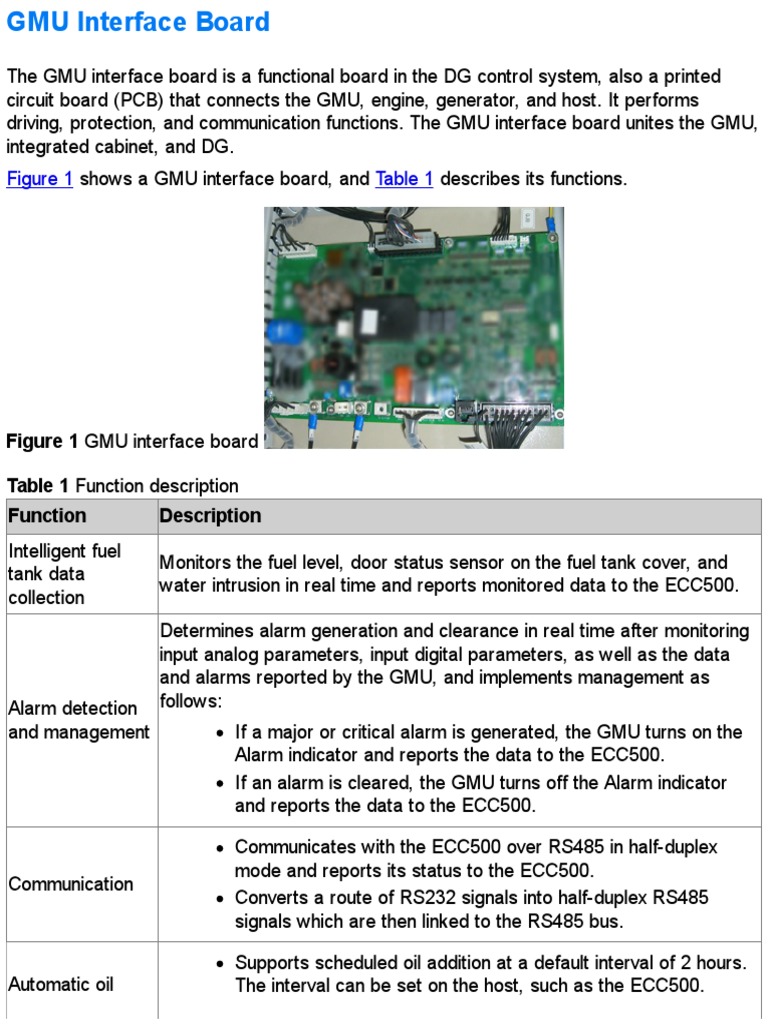 The GMU interface board is installed in the DG control compartment. Figure 2 shows its
