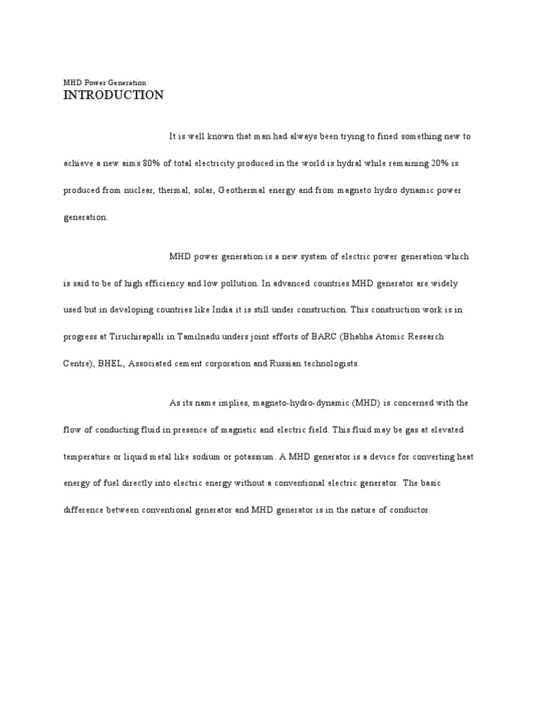 is said to be of high efficiency and low pollution. In advanced countries MHD generator are widely