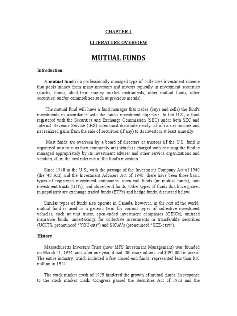 Since the Investment Company Act of 1940, a mutual fund is one of three basic