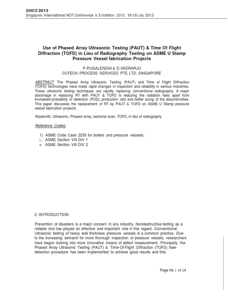 ABSTRACT: The Phased Array Ultrasonic Testing (PAUT) and Time of Flight Diffraction