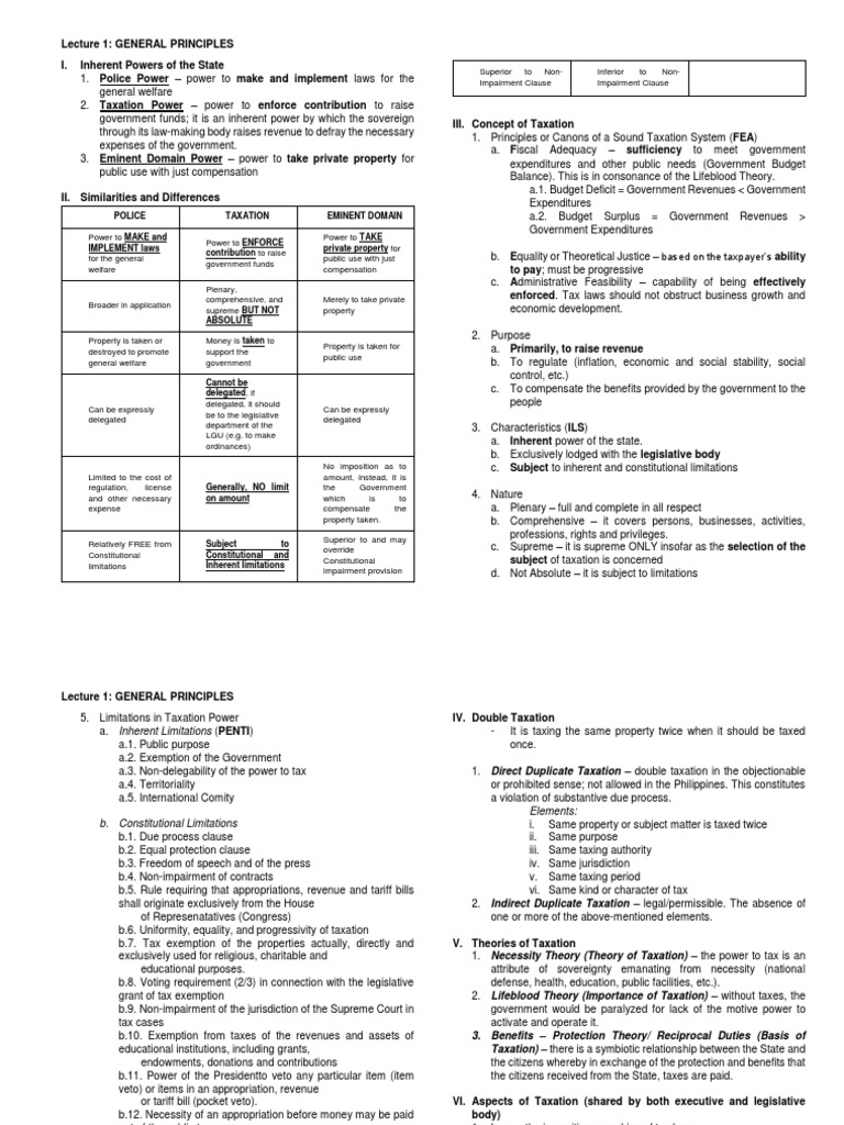 VII. Doctrines of Taxation a. Taxation is the process or means of imposing and enforcing