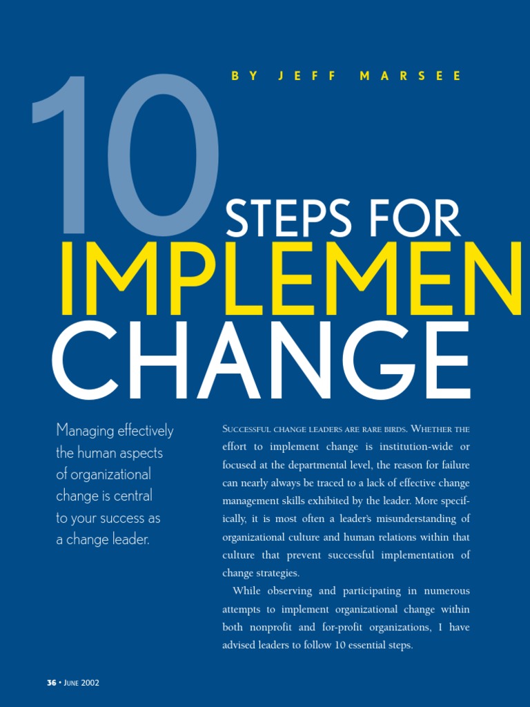 a sense of urgency. The fear of uncertainty that change brings Author Bio Prior to establishing the consulting practice of Jeff