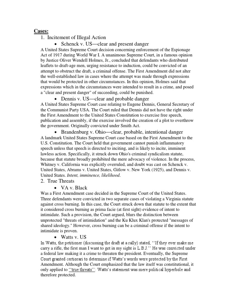 United States, Abrams v. United States, Gitlow v. New York (1925), and Dennis v.