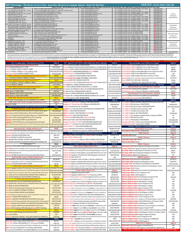selected MSY branches (please check our stock level online) and some items are ordered in through special request. Parts purchased at MSY technology are recommended to be purchased and installed (or assisted) by knowledgeable technical person. Please research before purchasing as