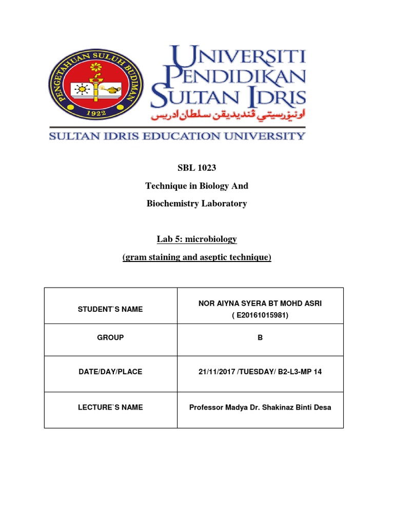 1. 1 drop of sterile water was added to the slide used a sterile inoculating loop. While, a