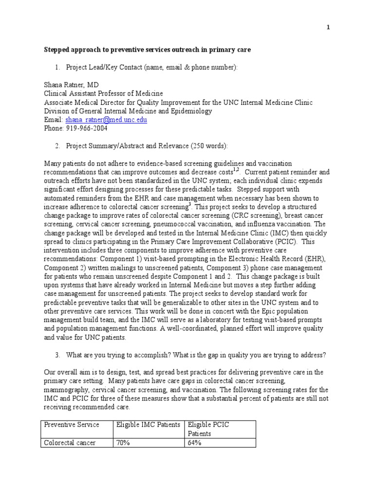 five preventive care services in the Internal Medicine Clinic. (S)he will assist in developing