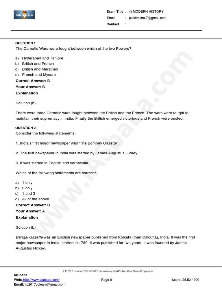 Correct Answer: B Your Answer: B Explanation: Exam Title: 4) MODERN HISTORY Email Contact