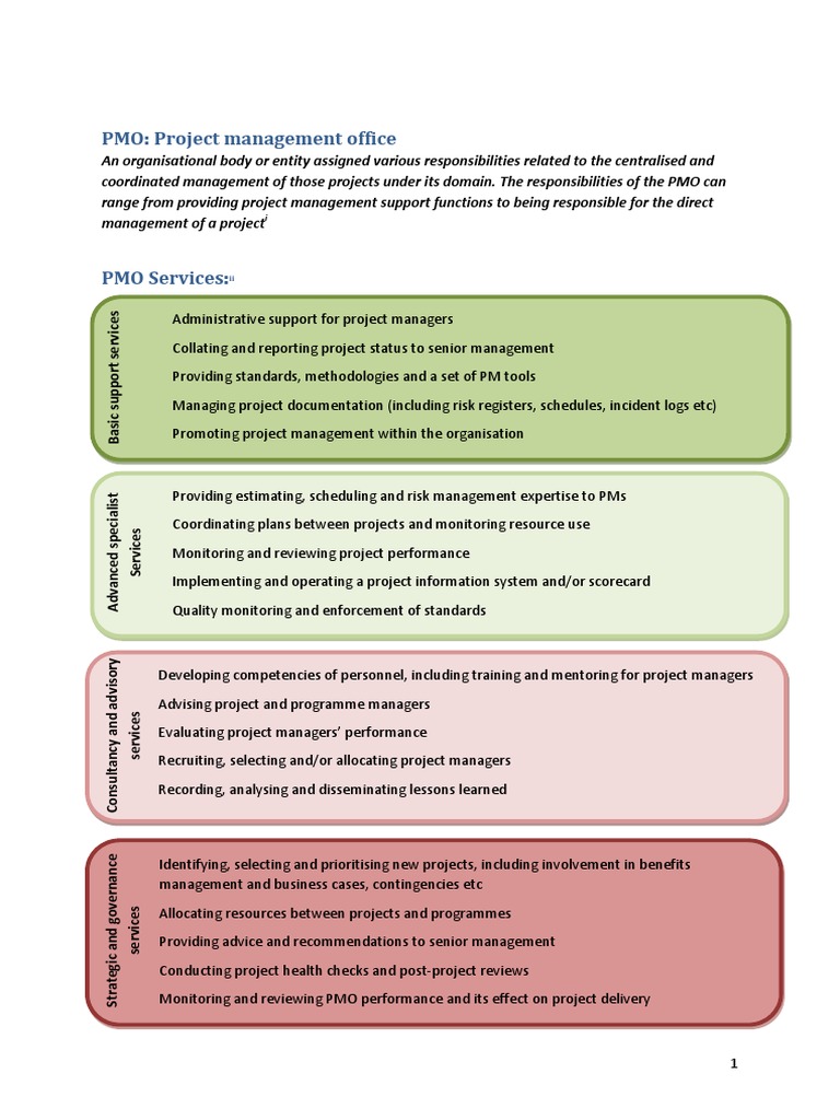1. The range of services provided by the PMO – this can be interpreted as the number of services,