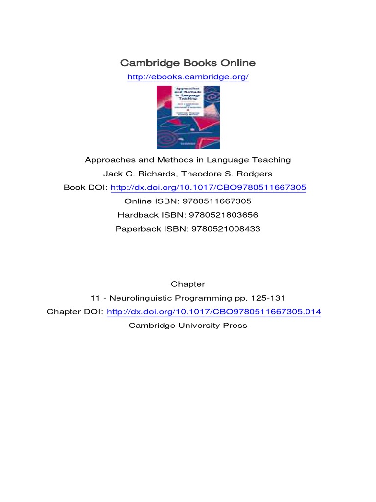 in your teaching” (1997: 15). In language teaching, the appeal of NLP to