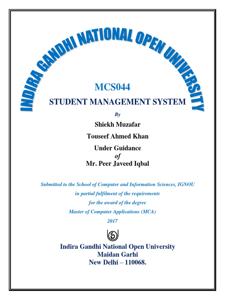 Submitted to the School of Computer and Information Sciences, IGNOU