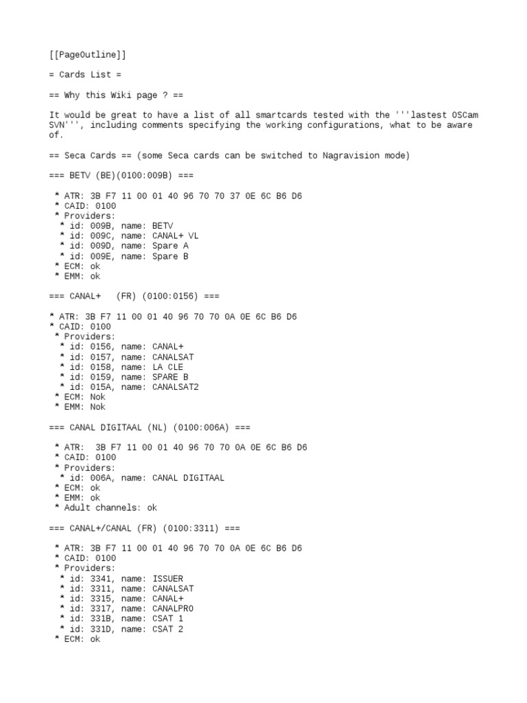 It would be great to have a list of all smartcards tested with the '''lastest OSCam