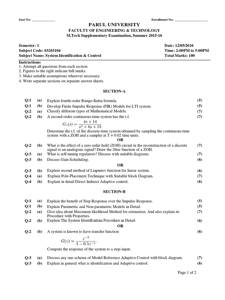 Q:3 (b) Explain in general what is identification and Adaptive control. (6)