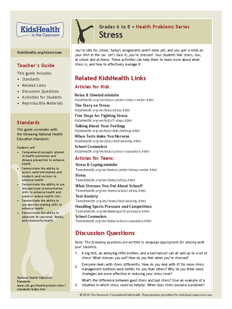 big things like dealing with divorce or a sick family member. First, read the KidsHealth.org articles related to stress,