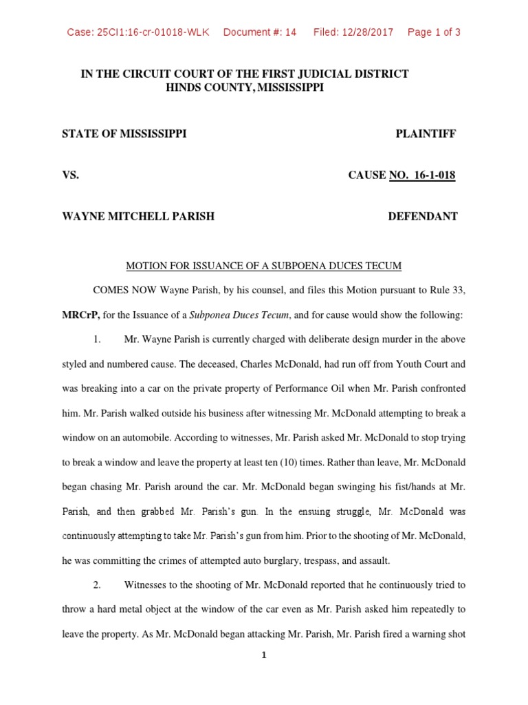 WHEREFORE PREMISES CONSIDERED, Mr. Parish moves the Court to issue an Order