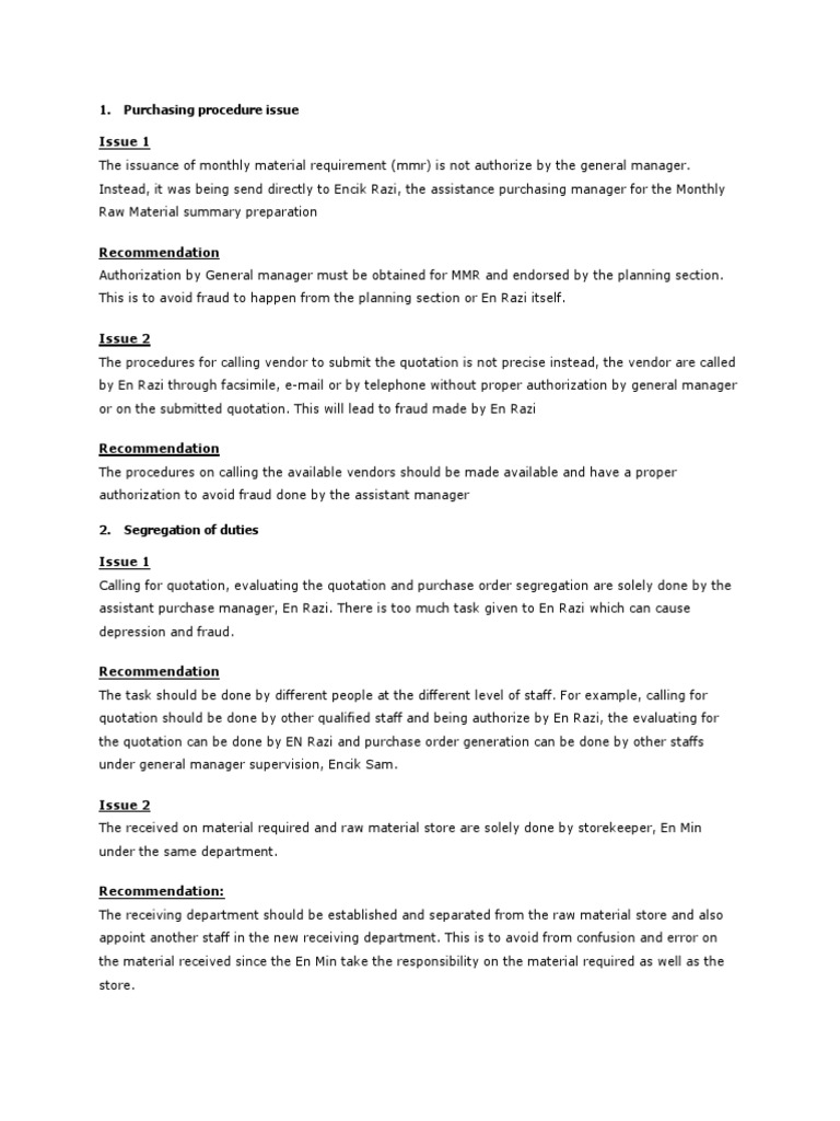 department in order to avoid material theft and also to make sure only necessary purchase be made