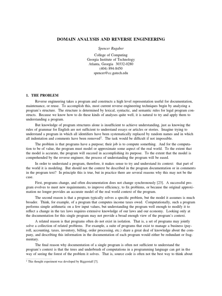 The argument for relating domain analysis to reverse engineering is equally convincing: reverse engineer-