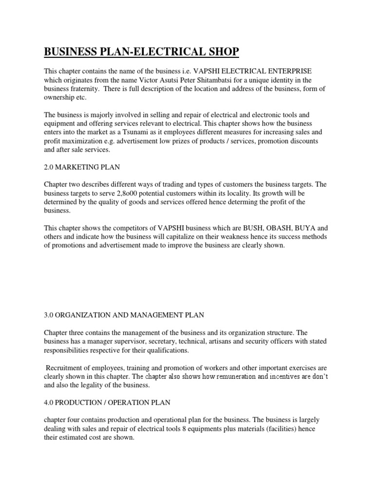 the proposed business that is VAPSHI ELECTRICAL ENTERPRISE will be dealing specifically