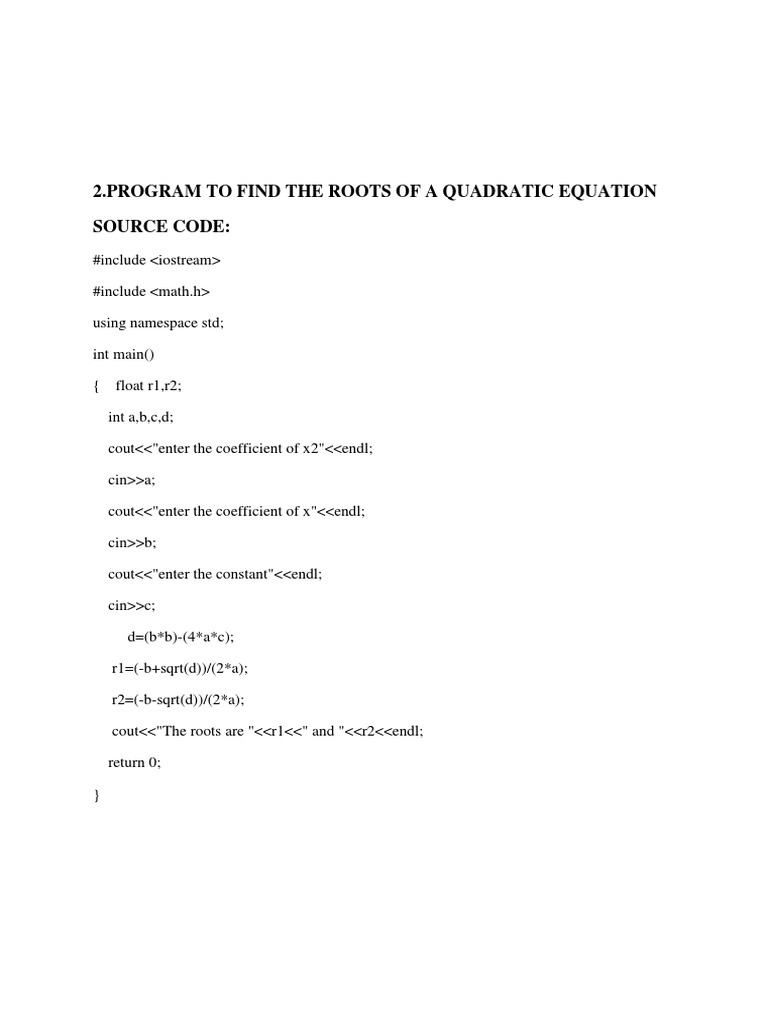 PROGRAM TO FIND THE ROOTS OF A QUADRATIC EQUATION