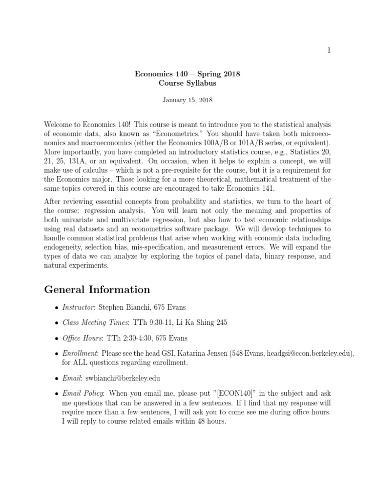 • Enrollment: Please see the head GSI, Katarina Jensen (548 Evans, headgsi@econ.berkeley.edu),