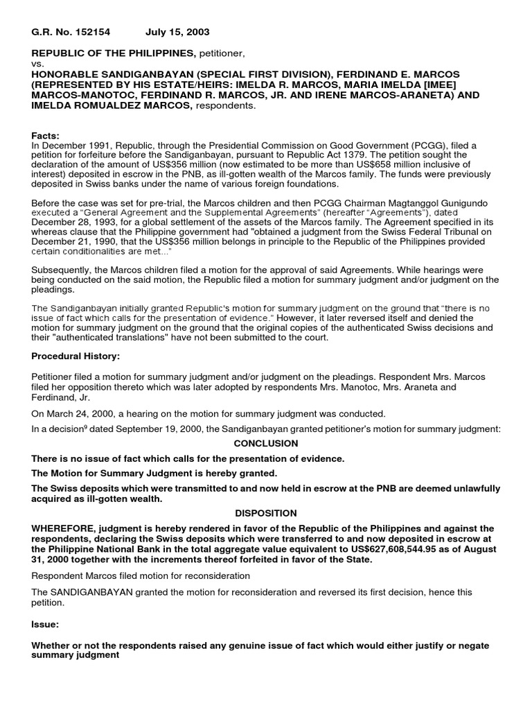 In December 1991, Republic, through the Presidential Commission on Good Government (PCGG), filed a