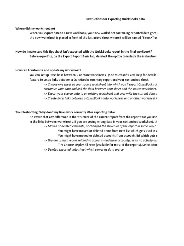 How do I make sure this tips sheet isn't exported with the QuickBooks report in the final workbook?