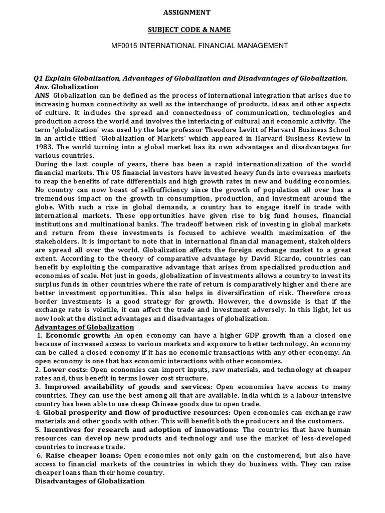 Q1 Explain Globalization, Advantages of Globalization and Disadvantages of Globalization.
