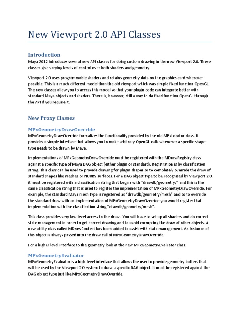 supported by Viewport 2.0. This class also requires no direct OpenGL knowledge – it is device