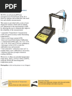 Protection class III, EC Directive 73/23 EN ORP, ISE Accuracy: 0.005 pH 0.1 mV cell, separated measuring