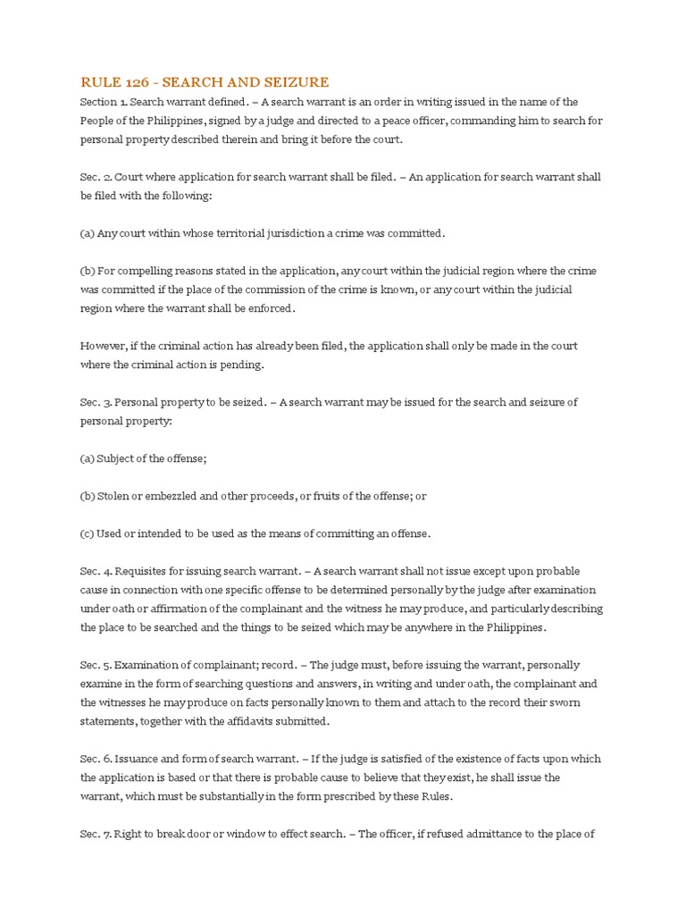 Section 1. Search warrant defined. – A search warrant is an order in writing issued in the name of the