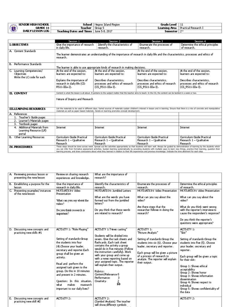 Grade 11 Research Lesson Plan
