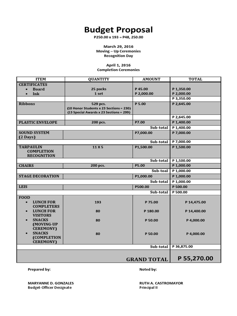 STAGE DECORATION P 2,000.00 P 2,000.00