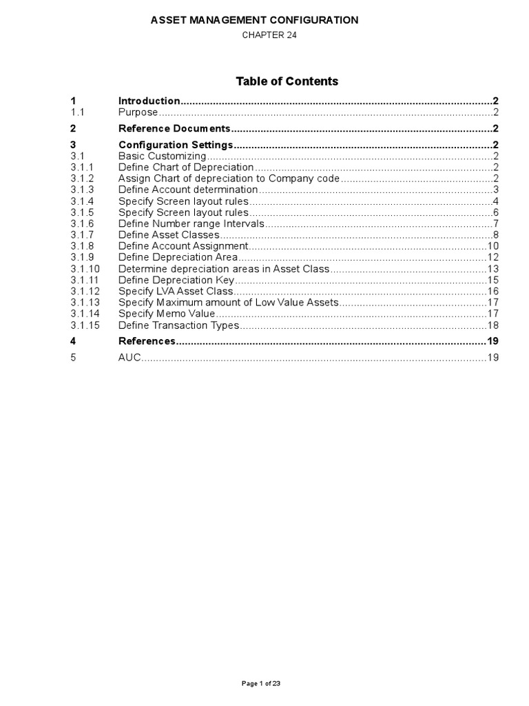 3.1.1 Define Chart of Depreciation.................................................................................2