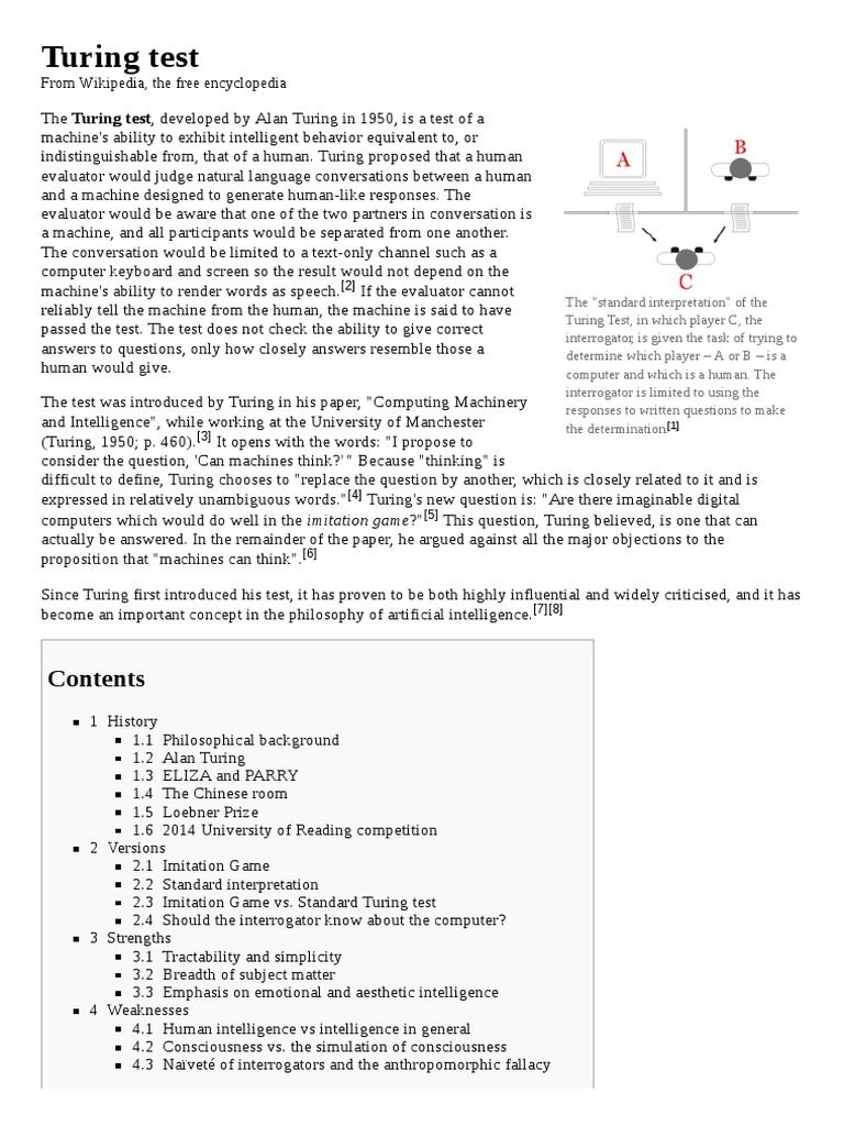 "The Turing test". Stanford Encyclopedia of Philosophy.