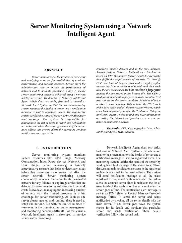 1. INTRODUCTION Network Intelligent Agent does two tasks,