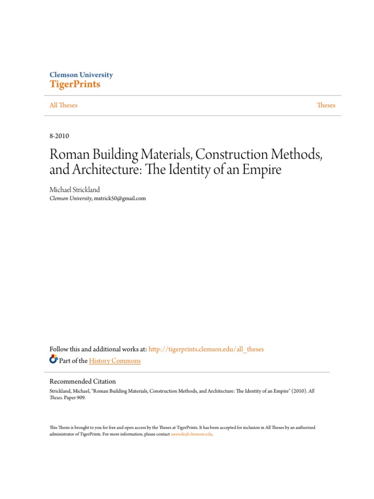 Strickland, Michael, "Roman Building Materials, Construction Methods, and Architecture: The Identity of an Empire" (2010). All
