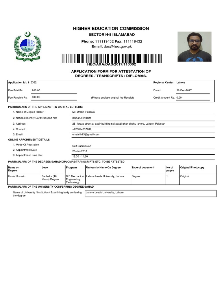 Note: HEC attests original documents first then photocopies. No request for the attestation of photocopies would be entertained without the attestation of original documents.