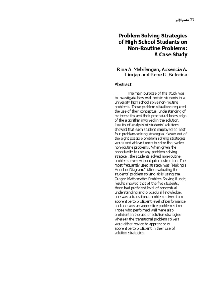 tion of two or three strategies. Each student employed at least four problem solving strategies