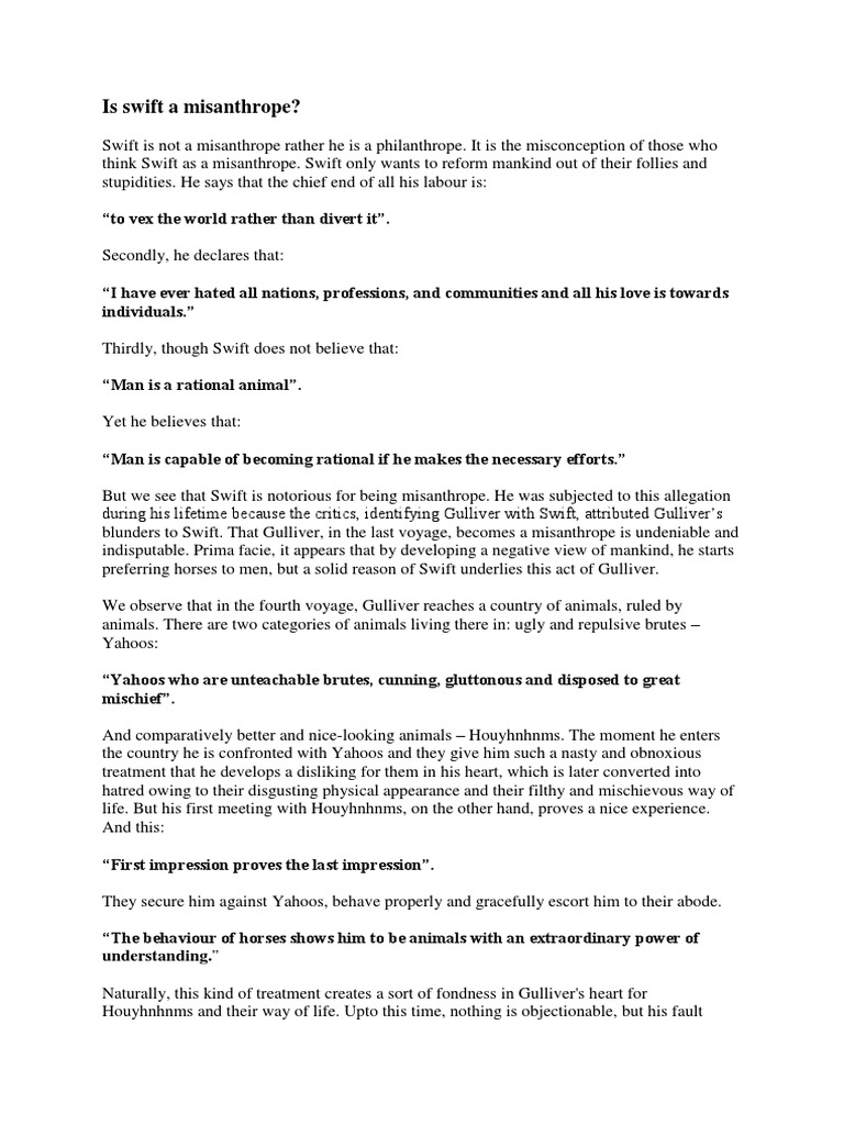 Is swift a misanthrope?