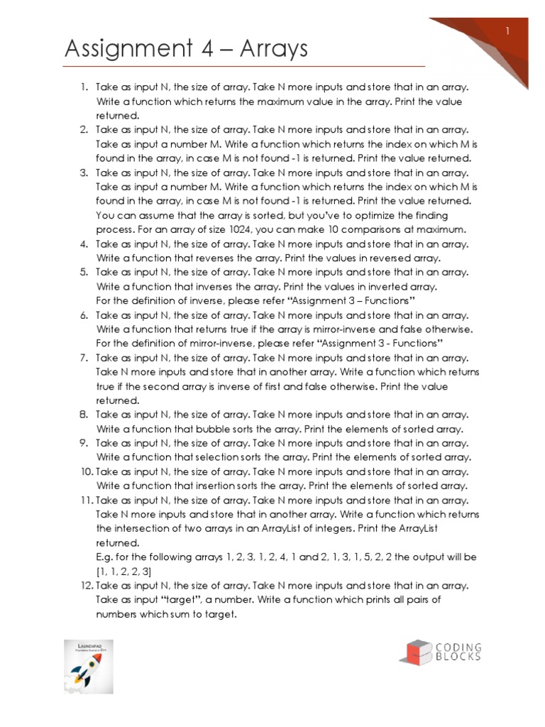5. Take as input N, the size of array. Take N more inputs and store that in an array.