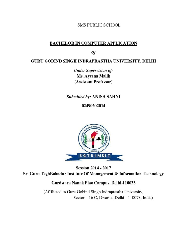 Indraprastha University in the partial fulfillment for the award of the Degree of