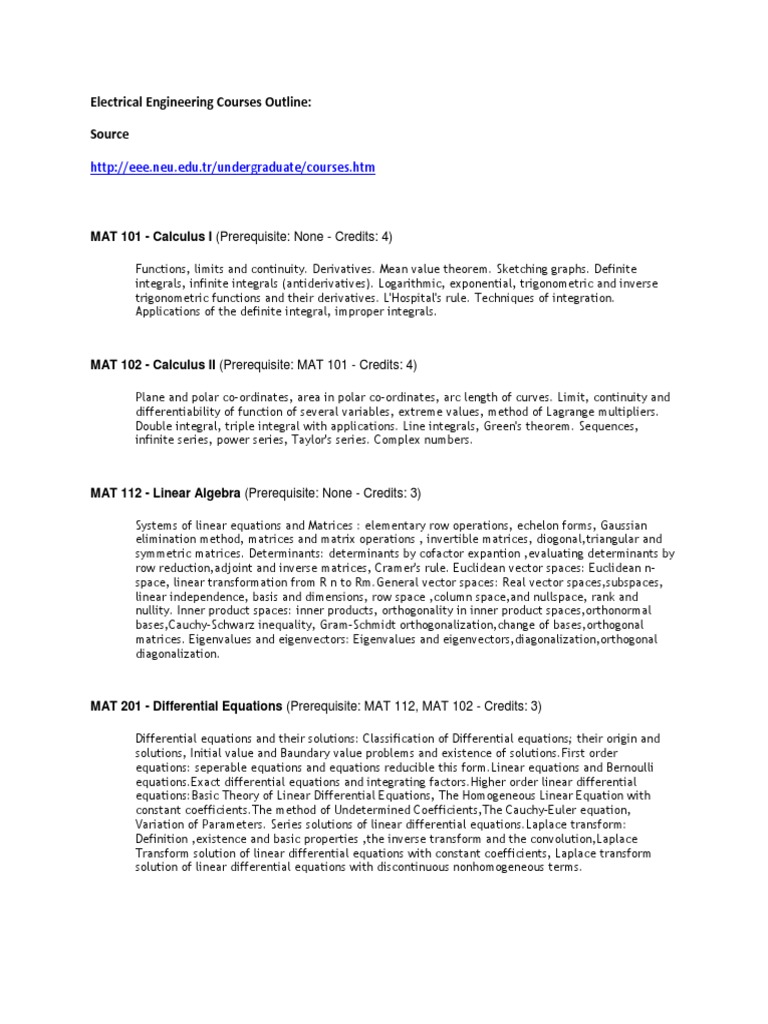 Electrical Engineering Courses Outline: