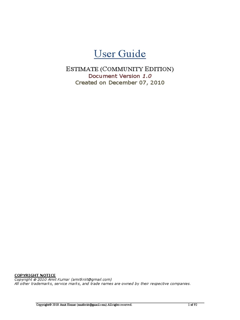 4.1.2 Adding a new Project or Estimate .............................................. 36