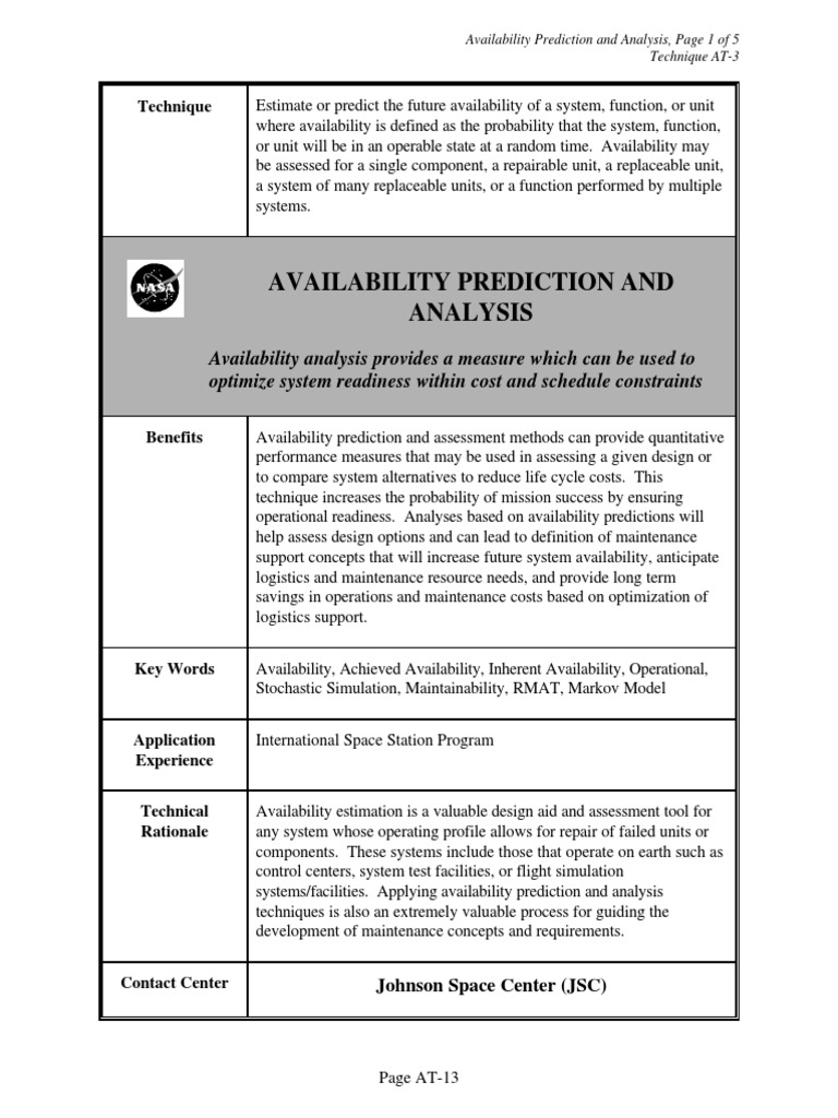 Availability Prediction Methods - NASA