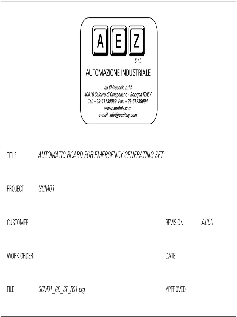 GCM01 1/9 ELECTRONIC CARD FOR GENERATING CONTROL POWER SUPPLY: 12 and 24Vcc 1 --- AEZ GCM01 ---