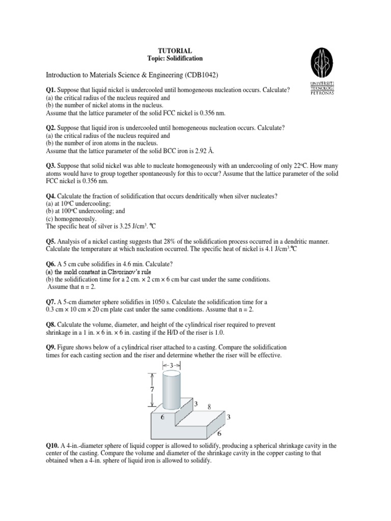 Q3. Suppose that solid nickel was able to nucleate homogeneously with an undercooling of only 22oC. How many