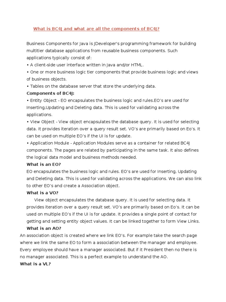 • Entity Object - EO encapsulates the business logic and rules.EO’s are used for