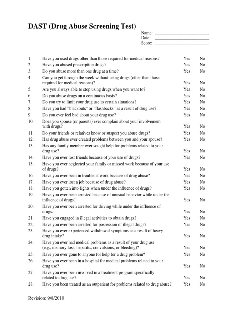 1. Have you used drugs other than those required for medical reasons? Yes No