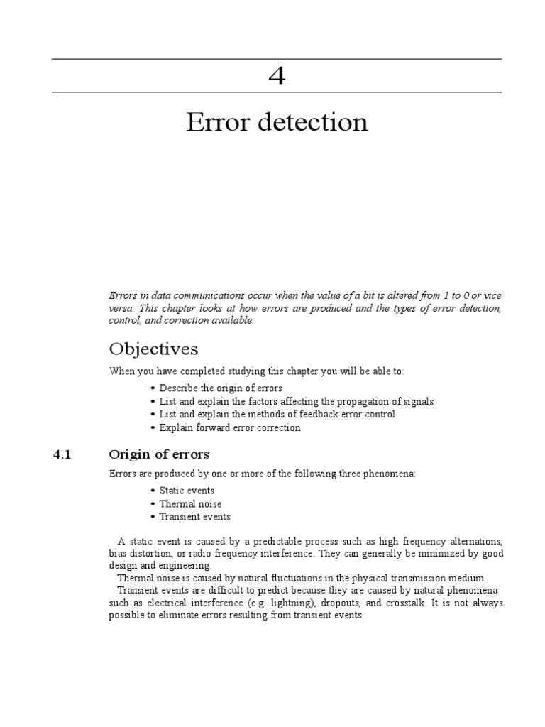 versa. This chapter looks at how errors are produced and the types of error detection,