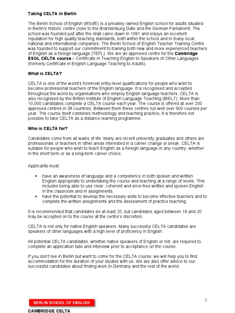 All potential CELTA candidates, whether native speakers of English or not, are required to
