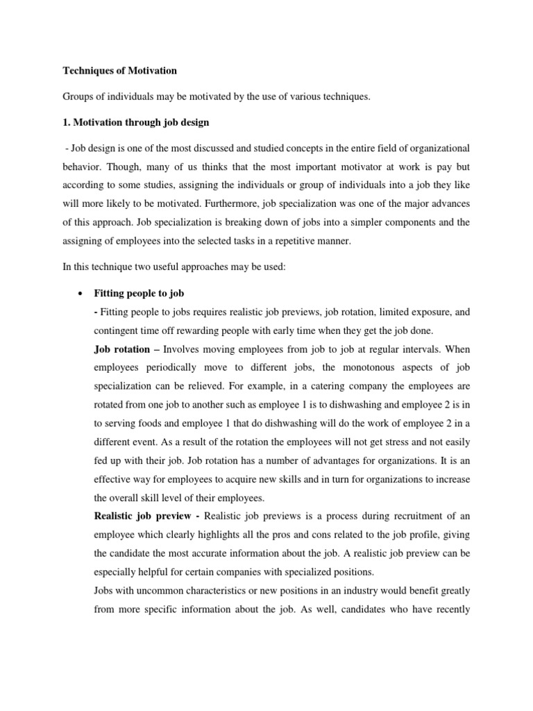 will more likely to be motivated. Furthermore, job specialization was one of the major advances